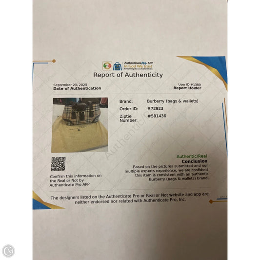 Handbag Luxury Designer By Burberry, Size: Medium