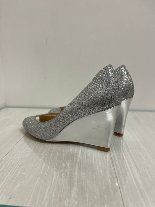 Shoes Heels Wedge By Badgley Mischka In Silver, Size: 7.5