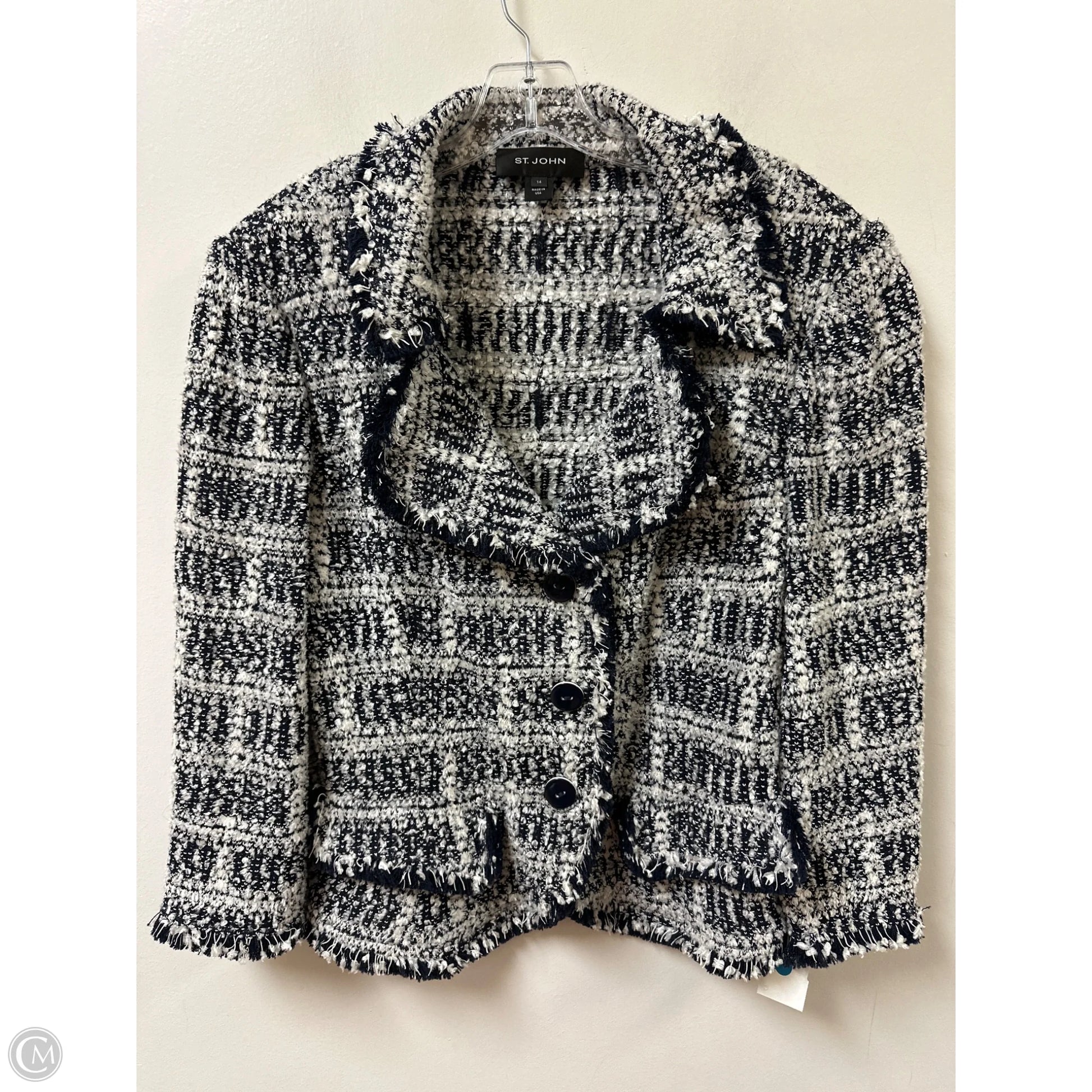 Blazer Luxury Designer By St John Collection In Blue & White, Size: L