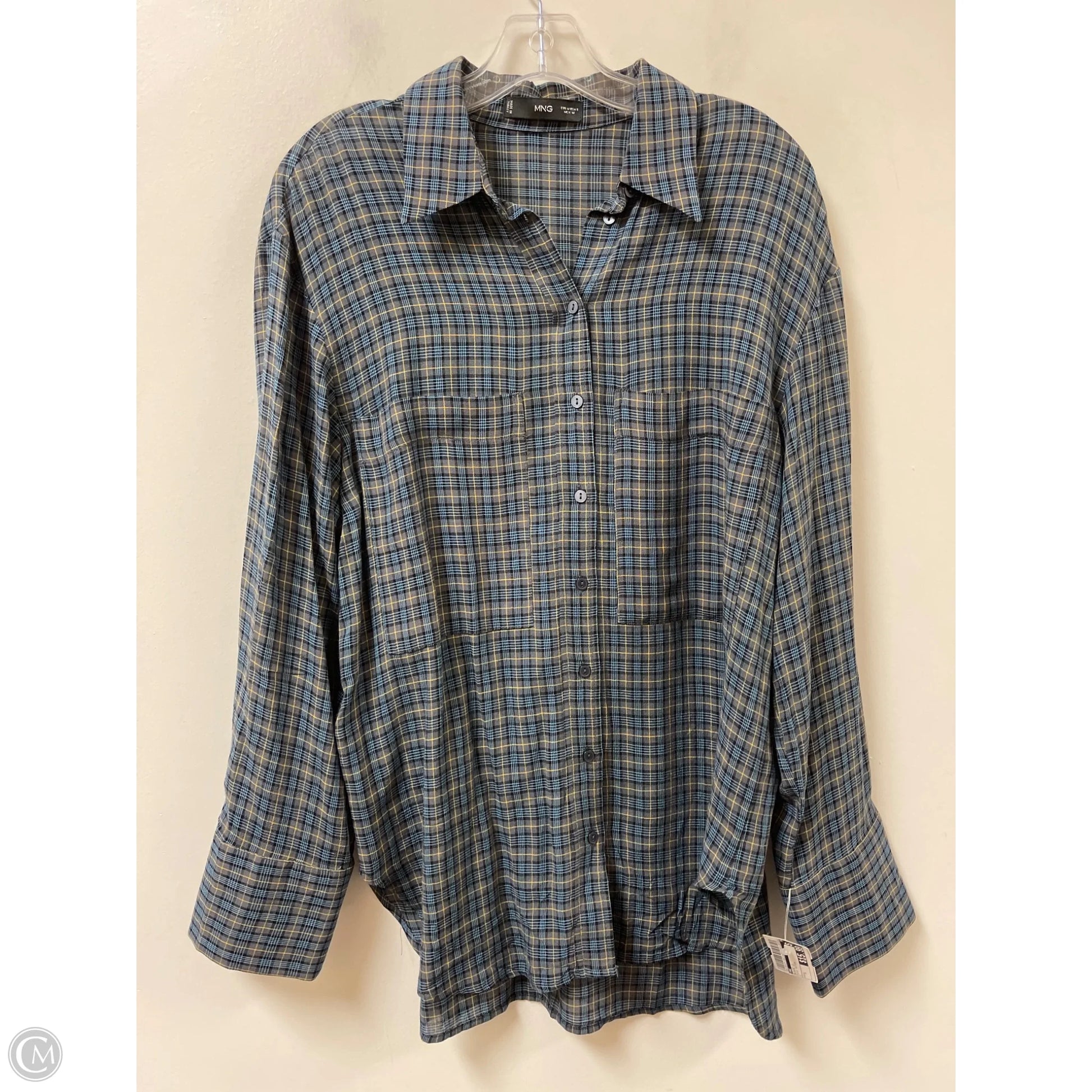 Blouse Long Sleeve By Mng In Plaid Pattern, Size: S