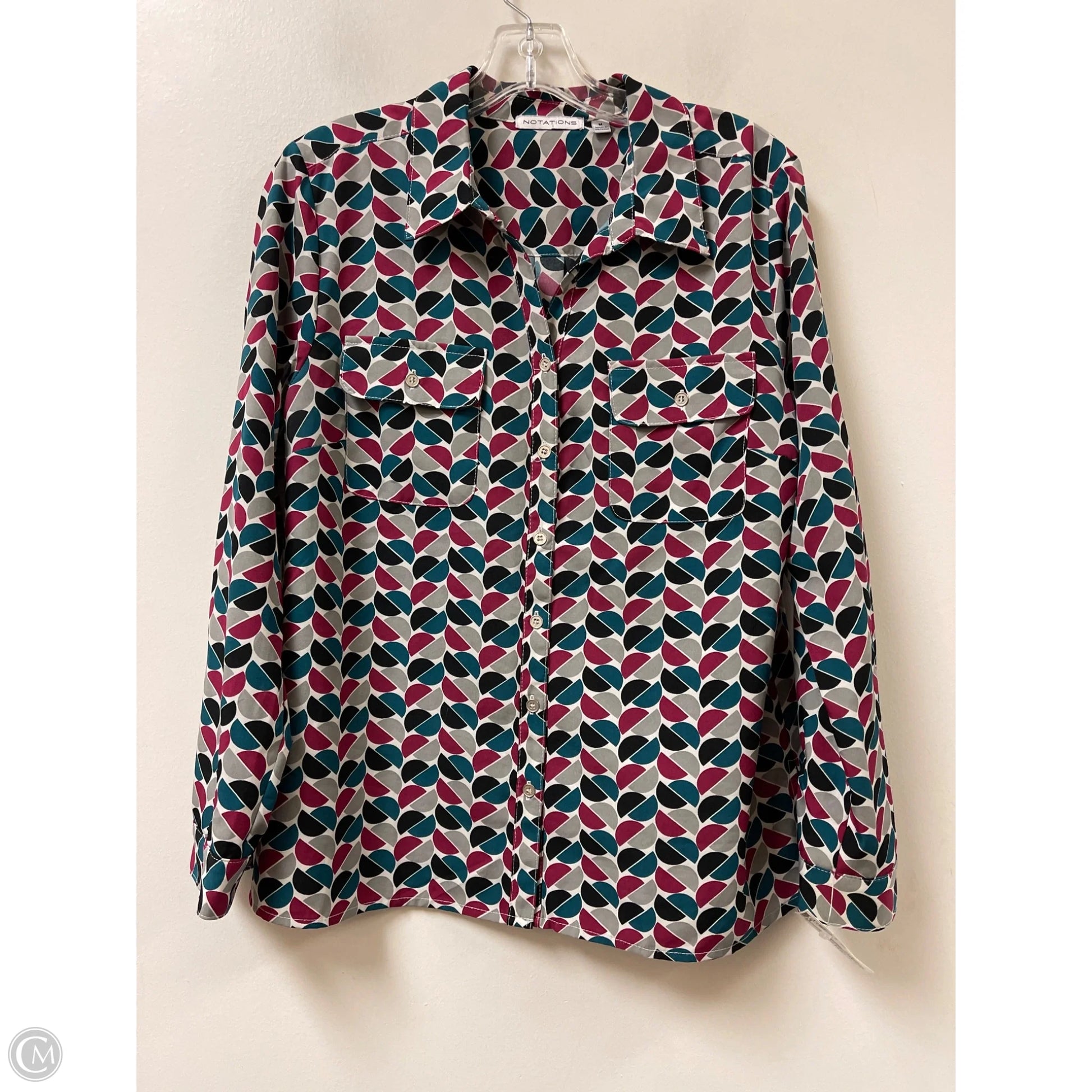 Blouse Long Sleeve By Notations In Multi-colored, Size: M