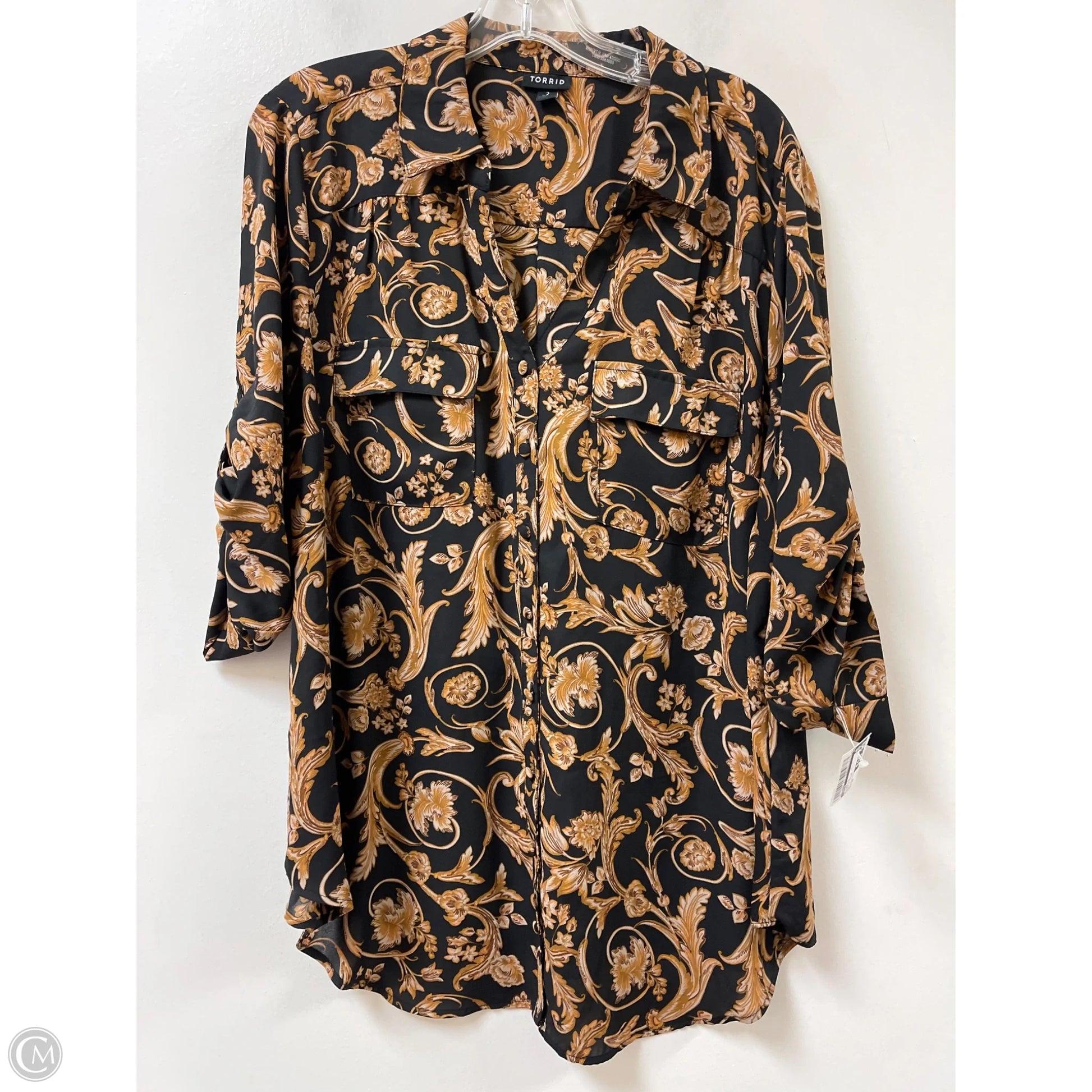 Blouse Long Sleeve By Torrid In Black & Yellow, Size: 2x