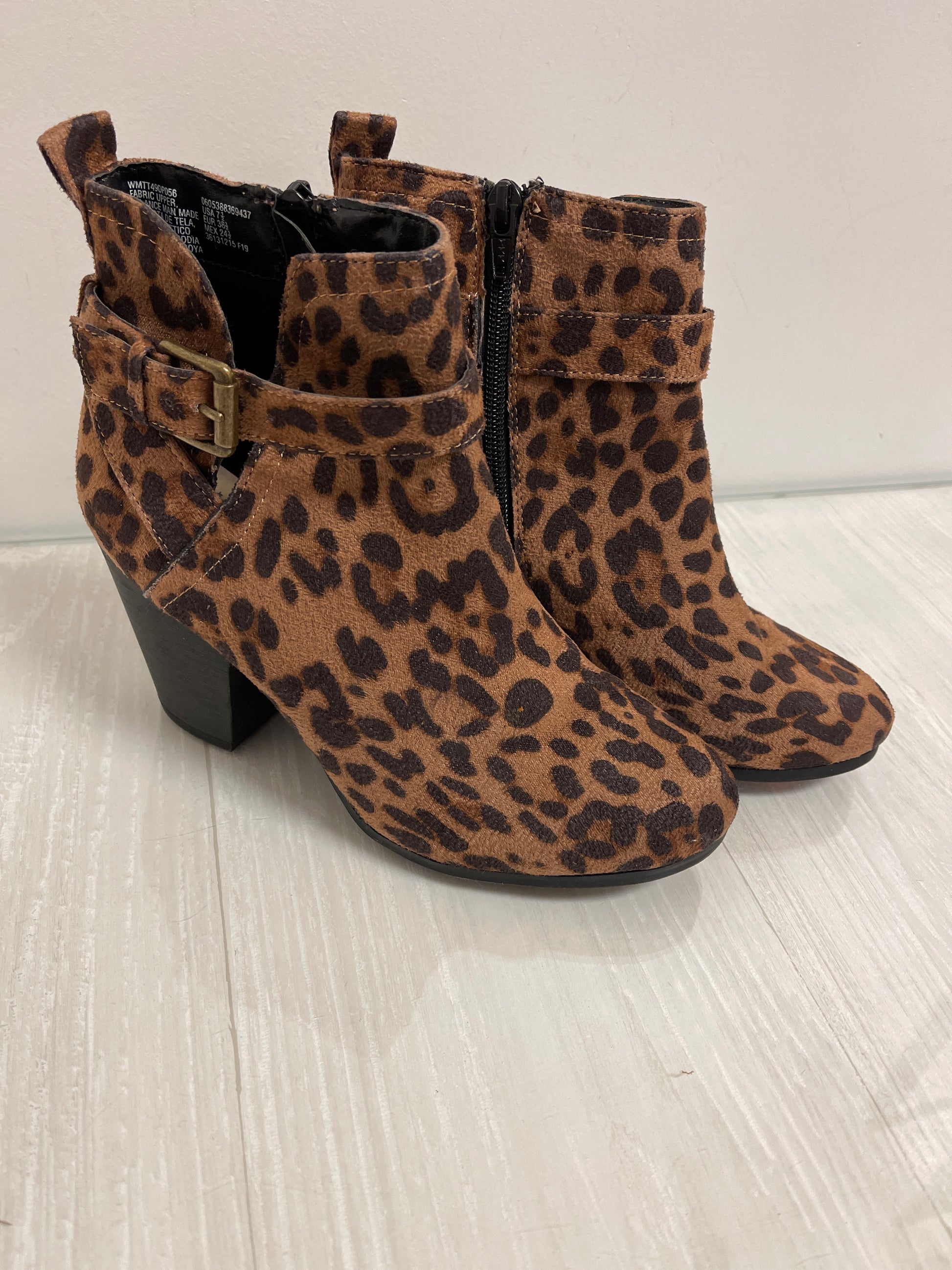 Boots Ankle Heels By Time And Tru In Animal Print, Size: 7.5