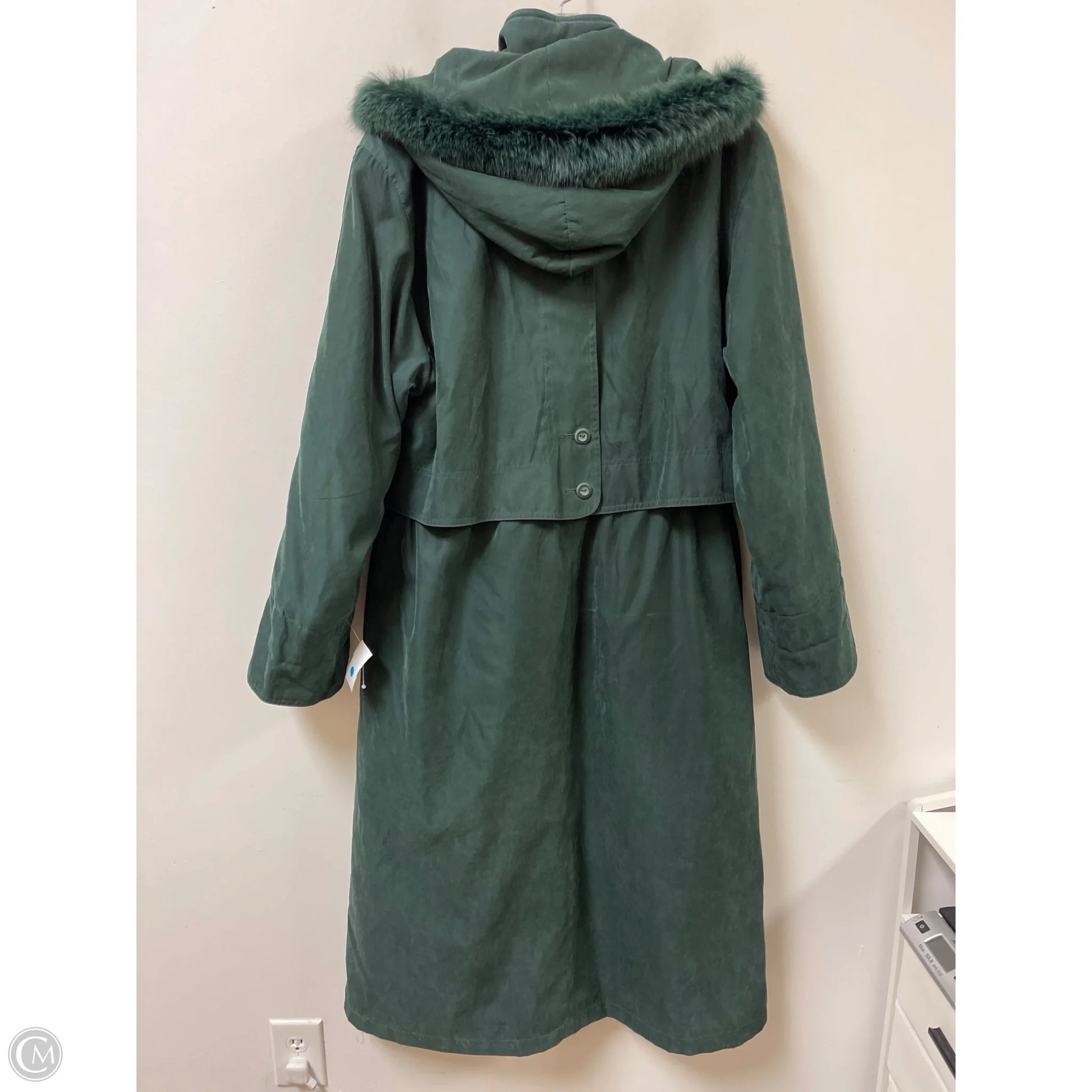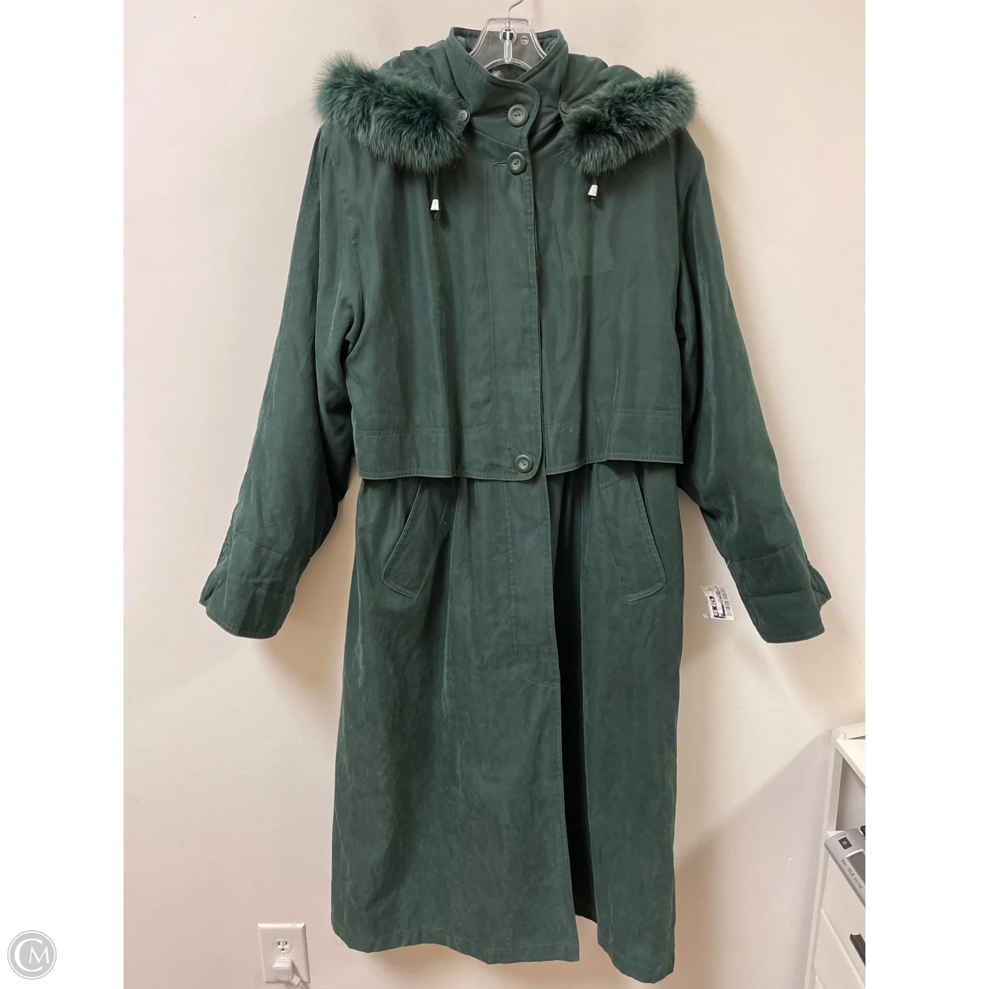 Coat Trench Coat By Clothes Mentor In Green, Size: M