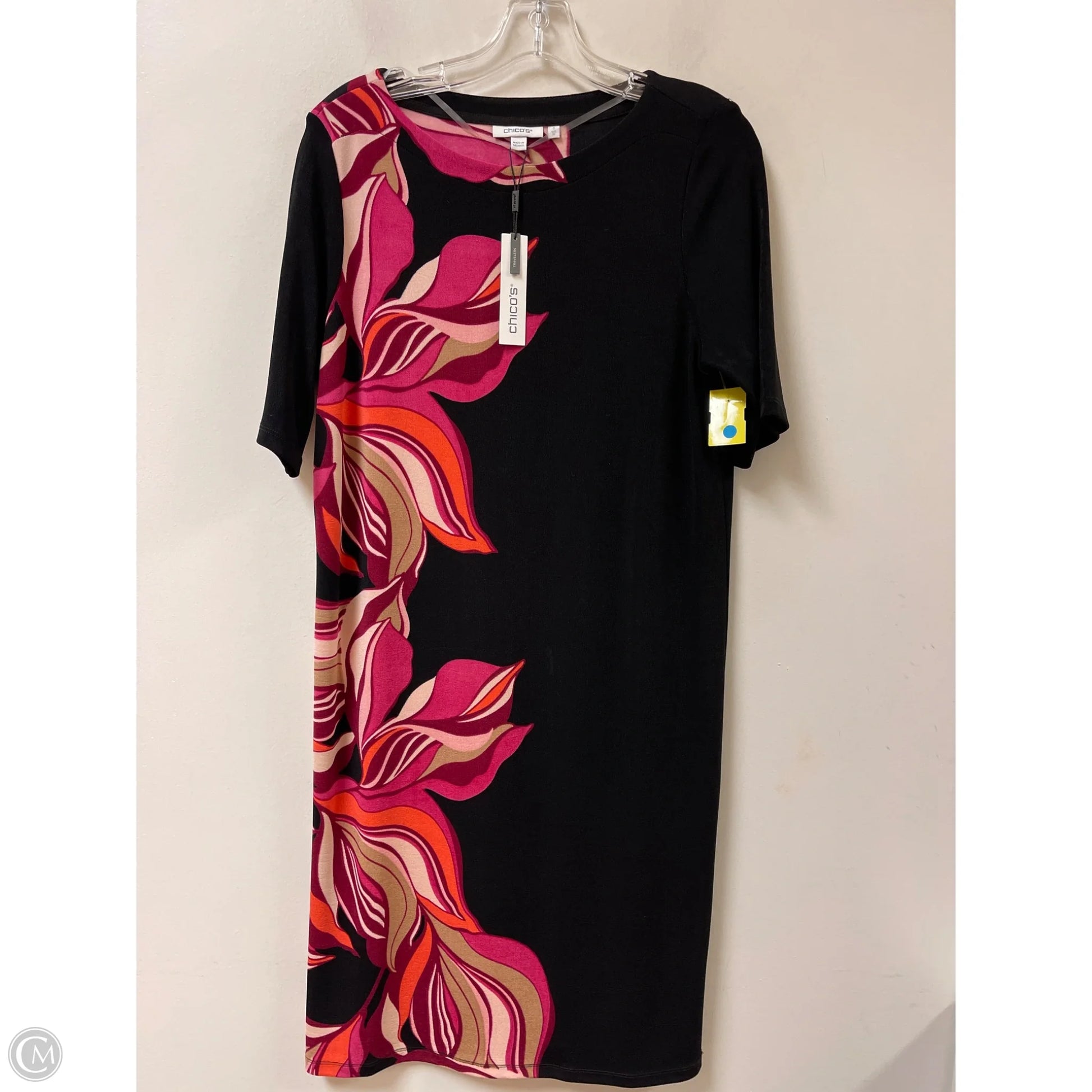 Dress Casual Midi By Chicos In Black & Pink, Size: M