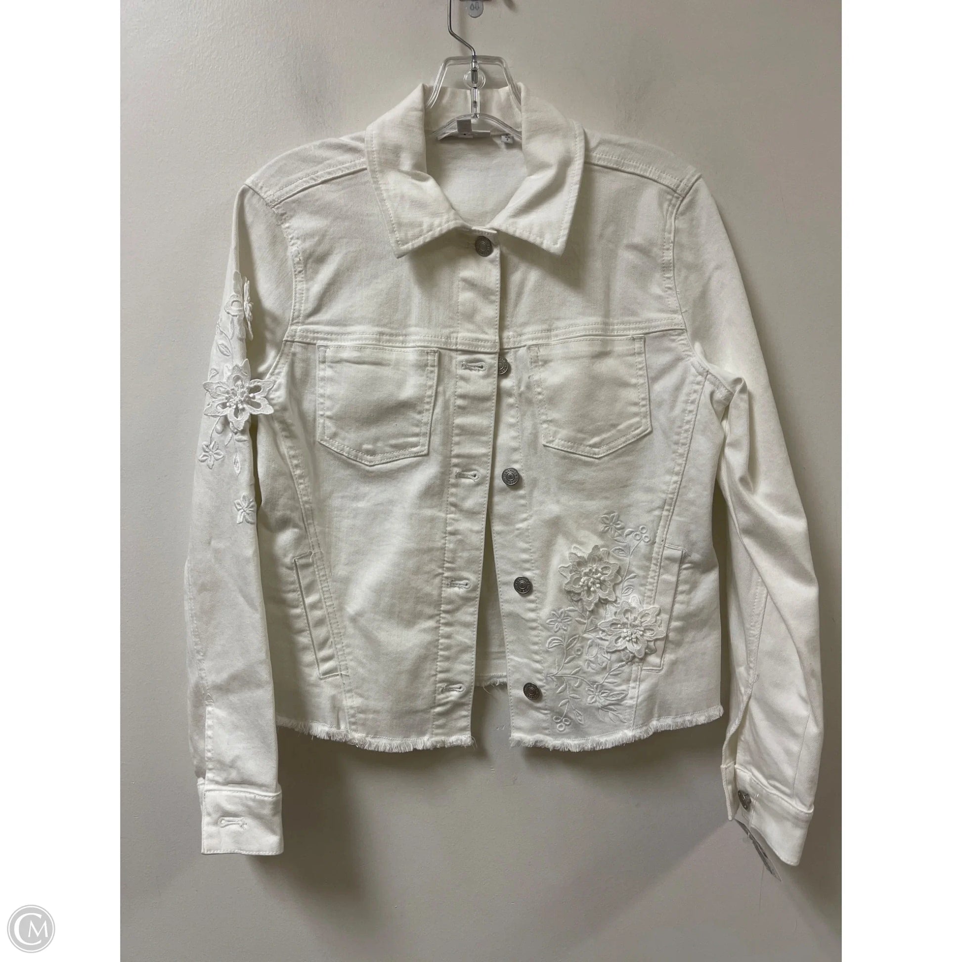 Jacket Denim By Chicos In White Denim, Size: S