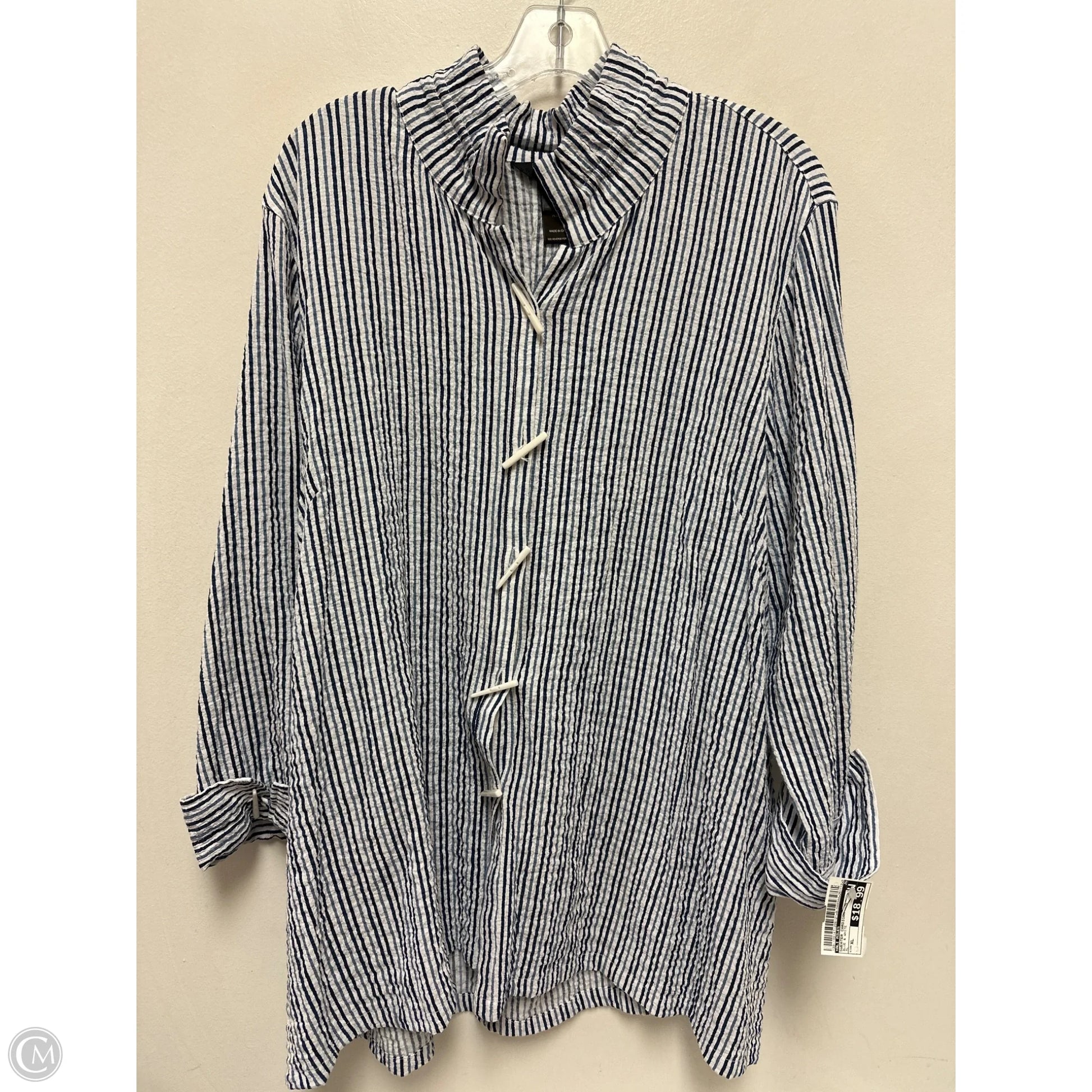 Sweater Cardigan By Ali Miles In Blue & White, Size: Xl