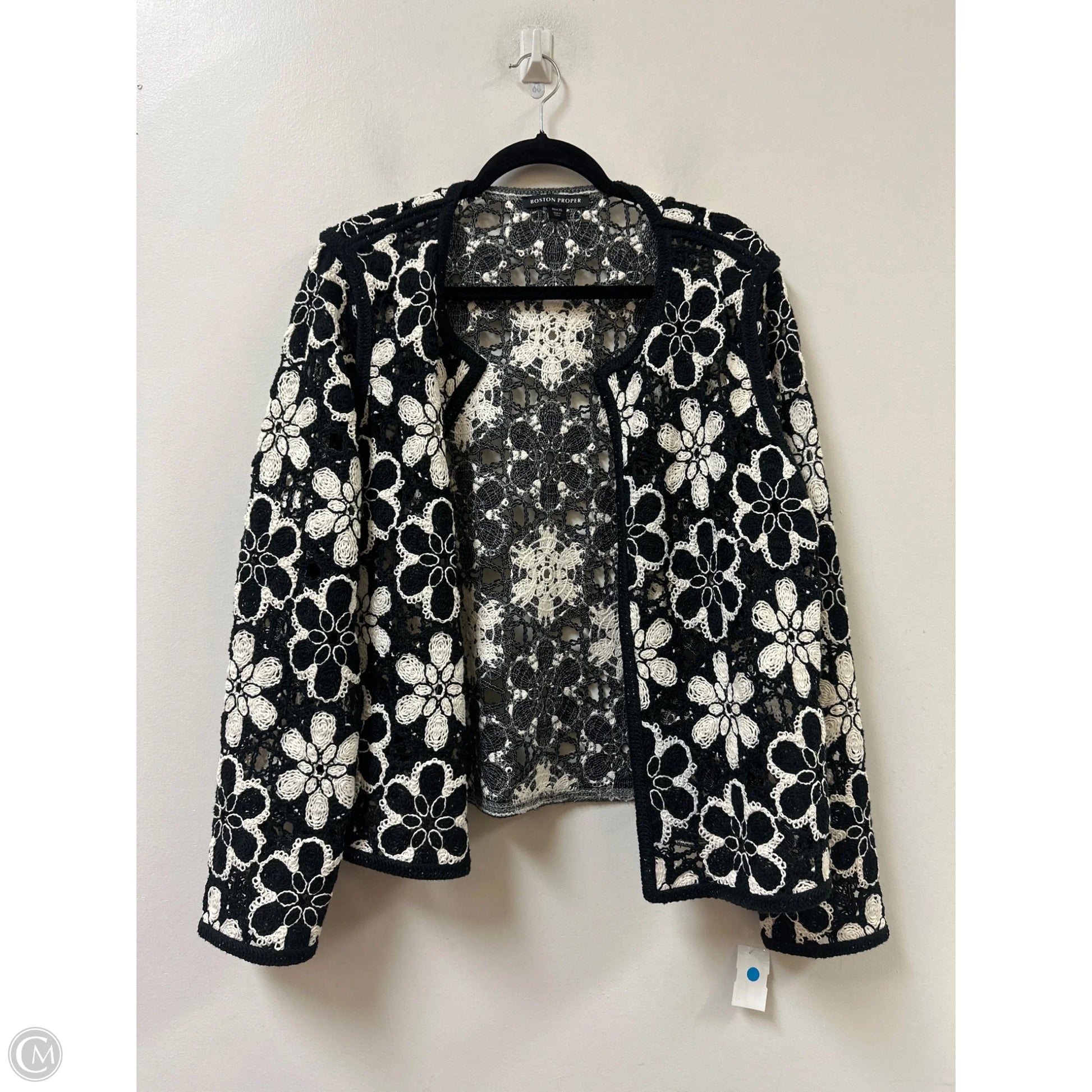 Sweater Cardigan By Boston Proper In Black & White, Size: Xl