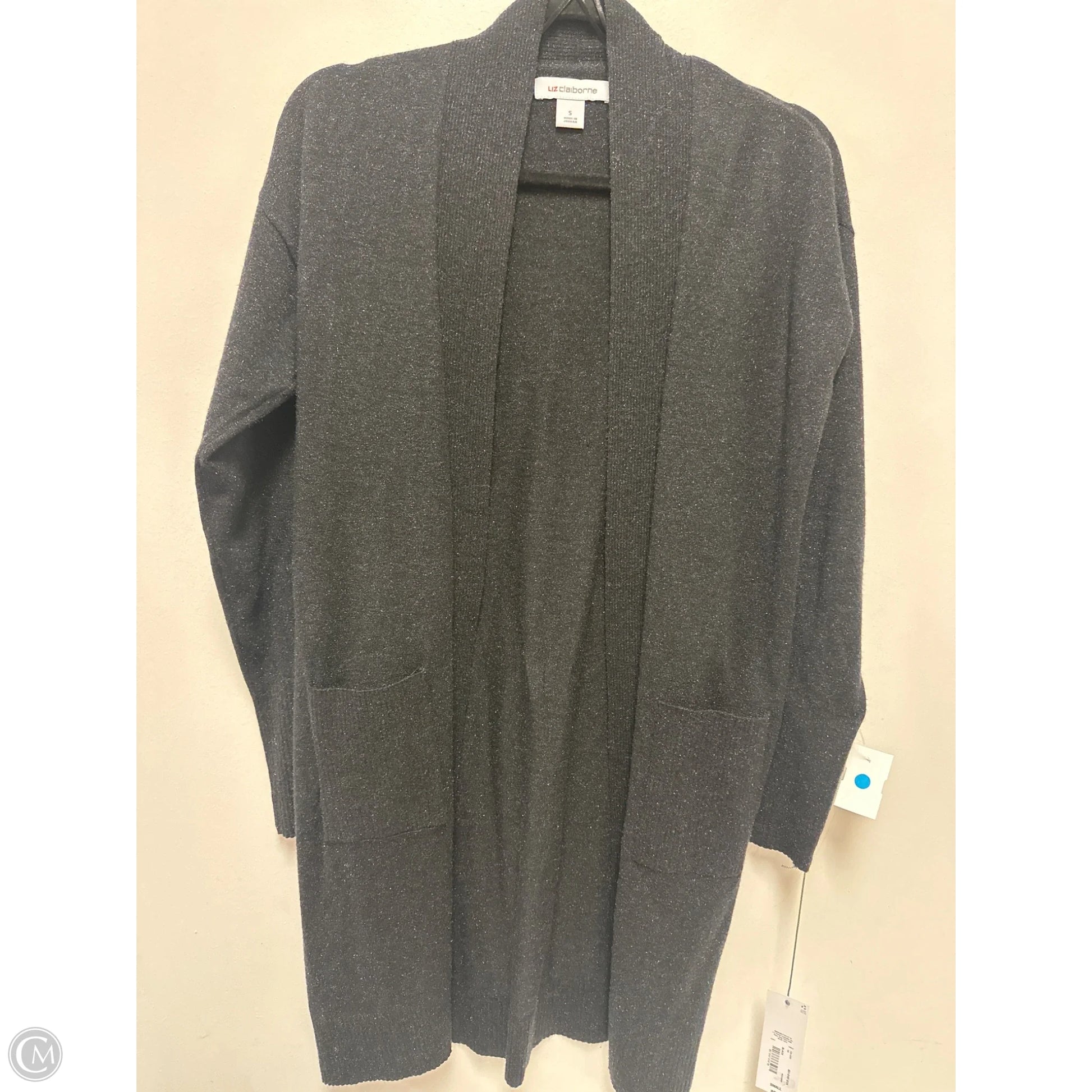 Cozy Liz Claiborne grey cardigan, size S. Chic comfort for any occasion.