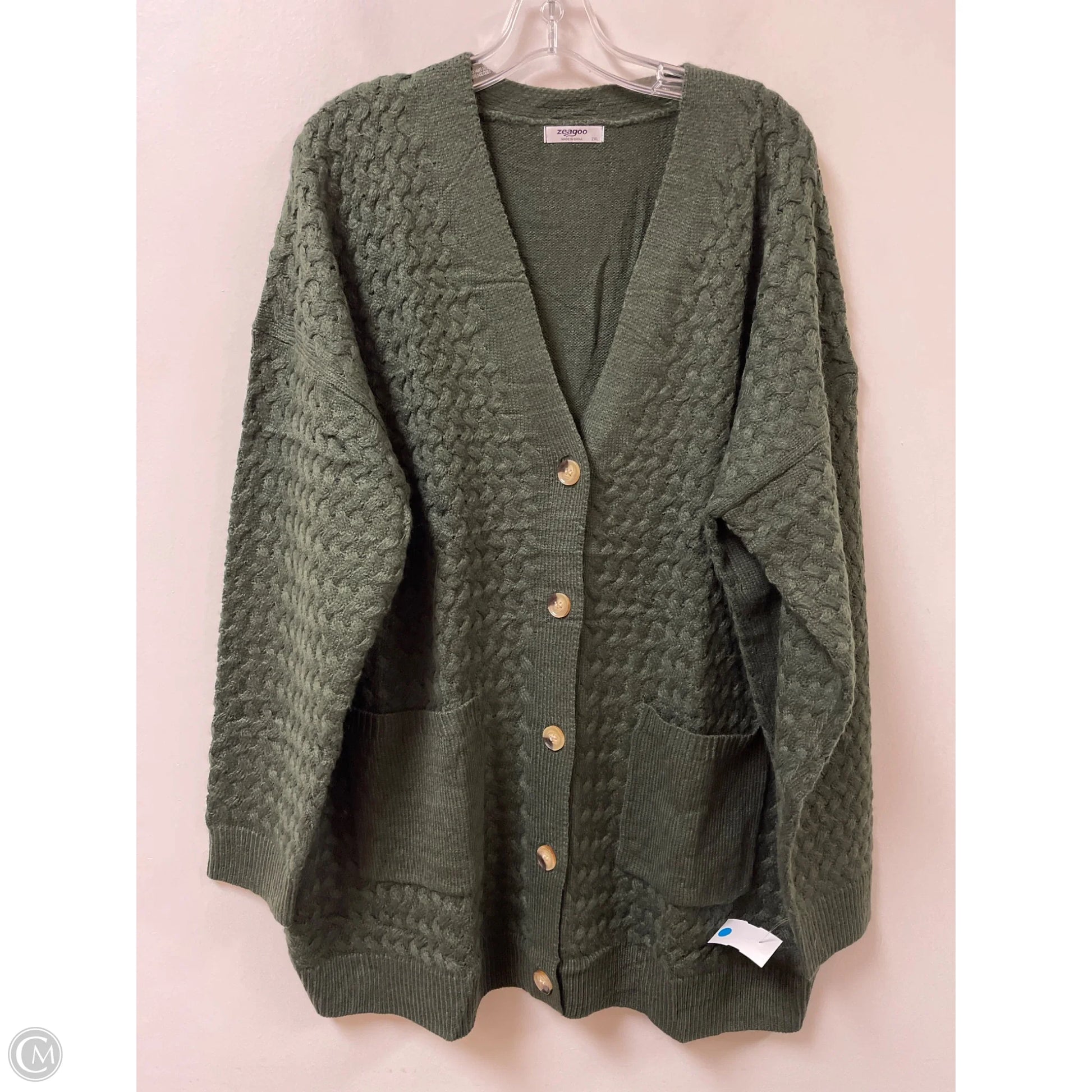 Sweater Cardigan By Zeagoo In Green, Size: 2x