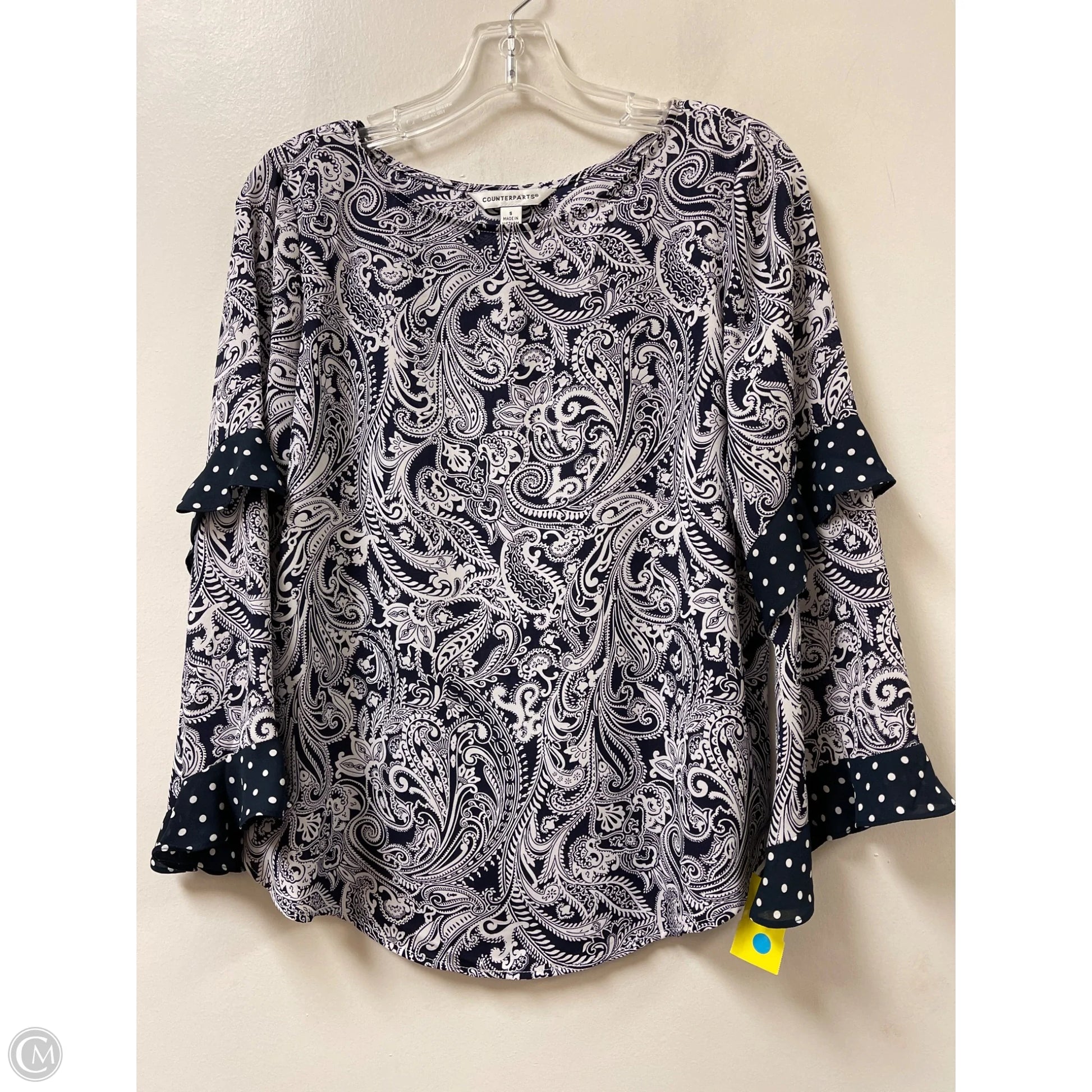 Top Long Sleeve By Counterparts In Blue & White, Size: 8