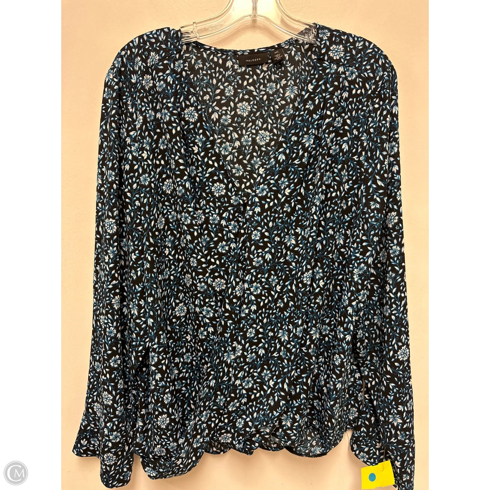 Top Long Sleeve By Halogen In Black & Blue, Size: 1x