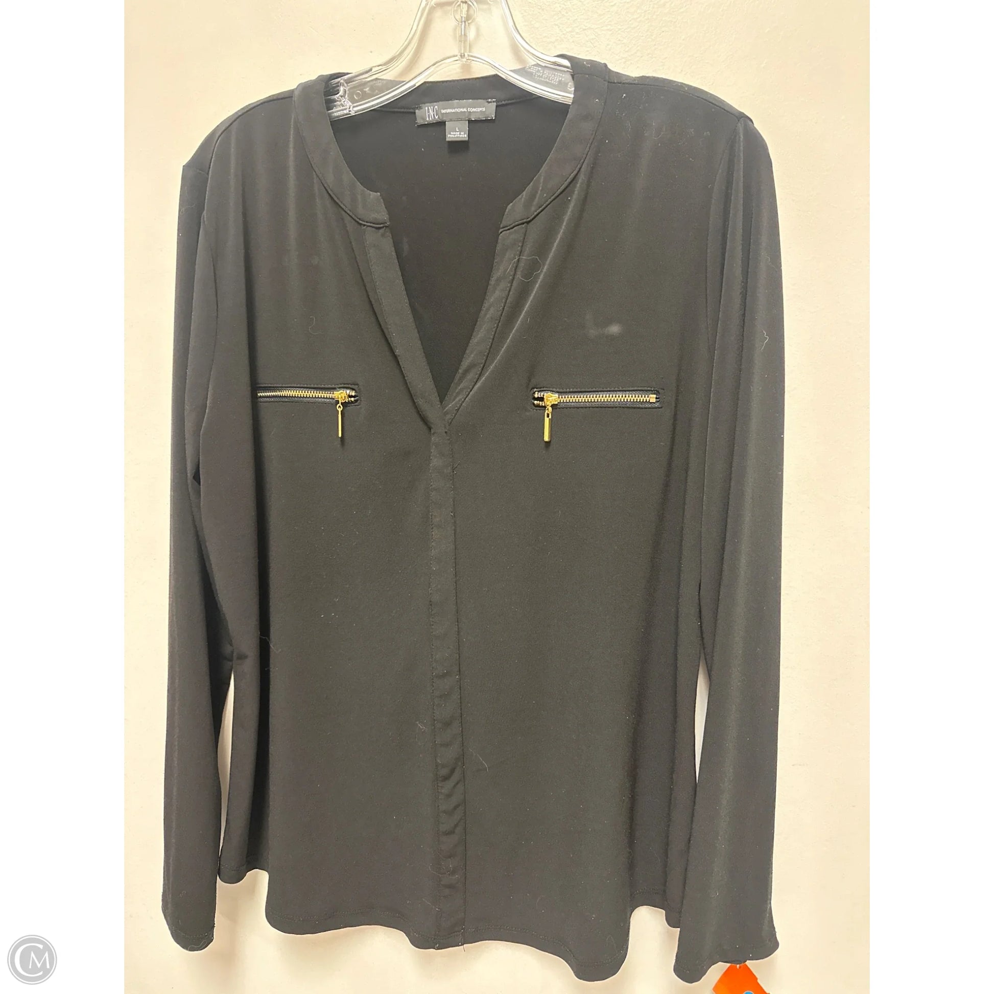 Top Long Sleeve By Inc In Black, Size: L