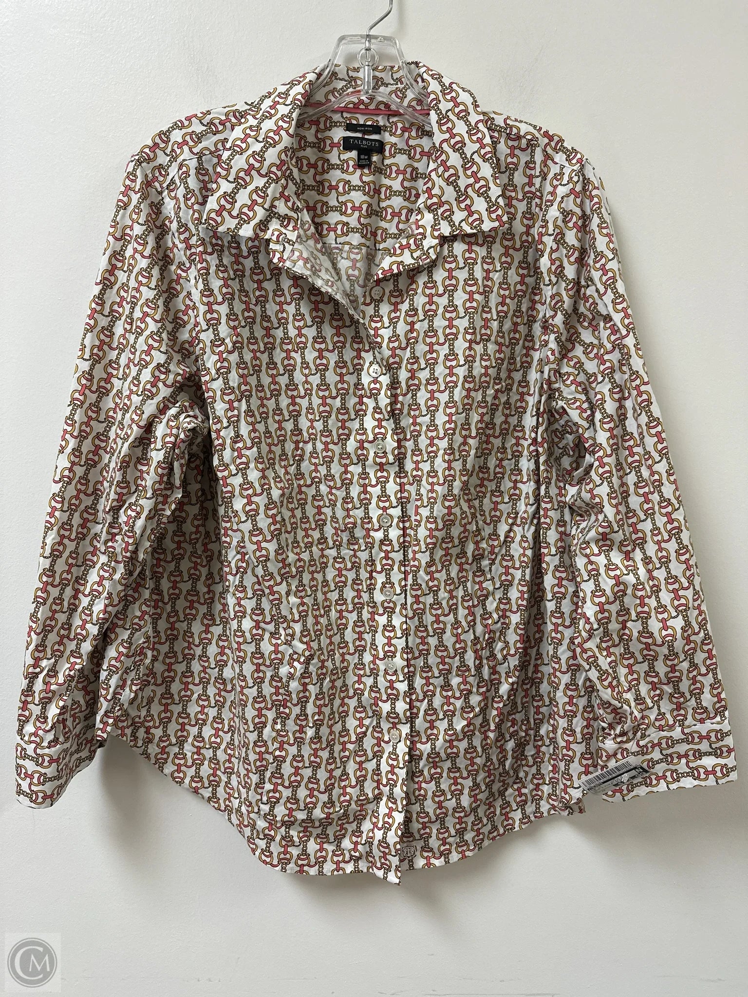 Top Long Sleeve By Talbots In Cream & Pink, Size: 2x