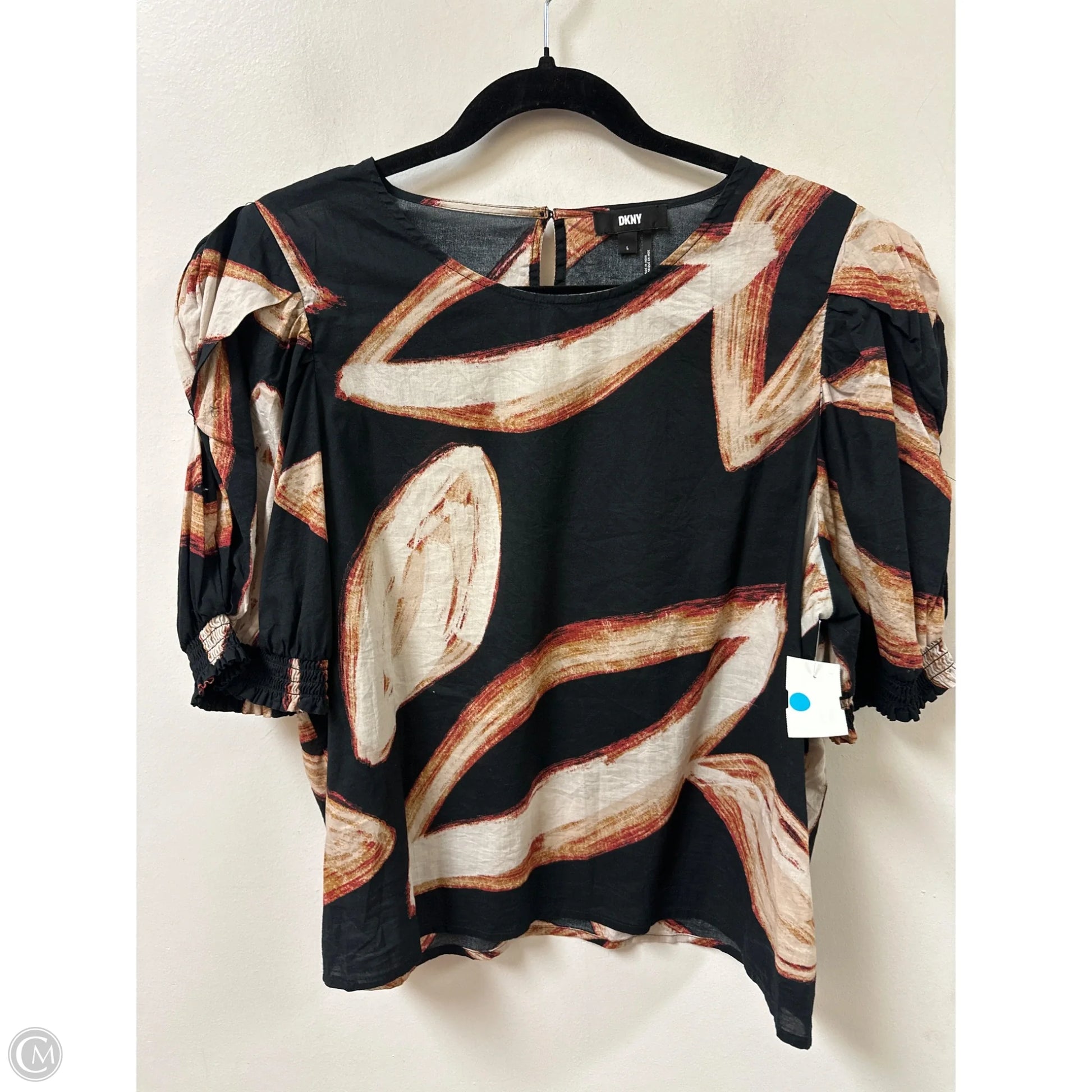 Top Short Sleeve By Dkny In Black & Orange, Size: L